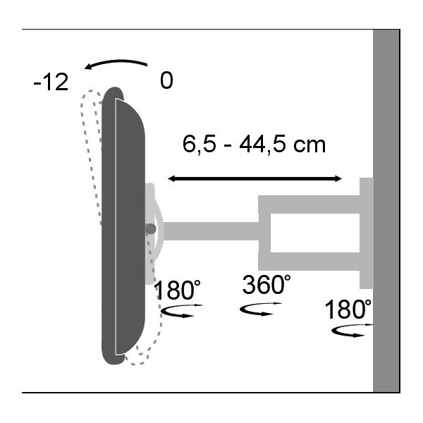 · Dimensioni: 190 x 57 mm placca a muro; 65 - 445 mm braccio, 2.2kg