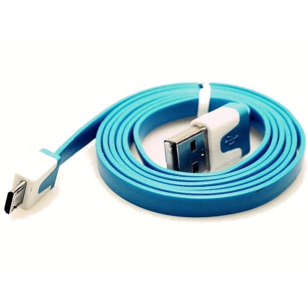 Cavo Flat USB AM a Micro USB M Azzurro 1m