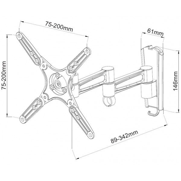 · Braccio a 3 snodi con massima estensione di 342 mm