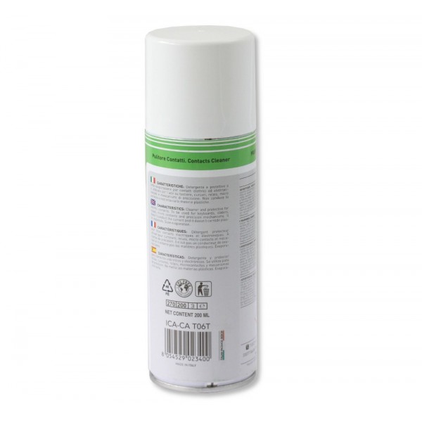 · Detergente e protettivo a lenta evaporazione per contatti elettrici ed elettronici · Indicato per l’uso su tastiere, cursori, relais, micro contatti e meccanismi di precisione · Non conduce la corrente e non intacca le materie plastiche · Contenuto netto: 200ml