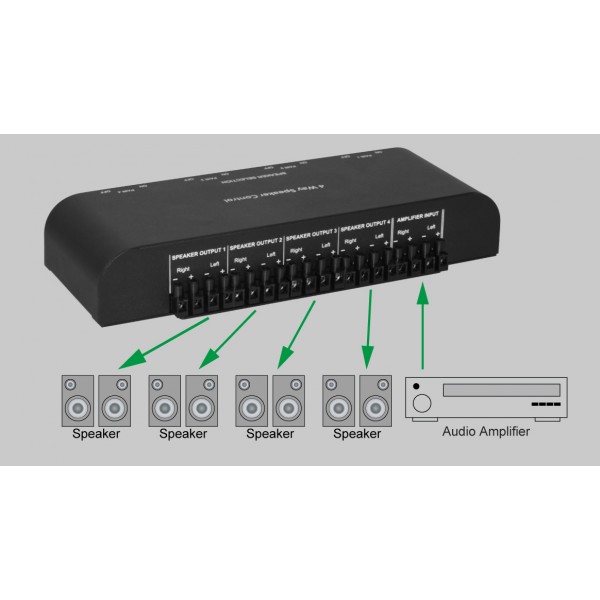 · Permette di connettere quattro casse acustiche ad un amplificatore per controllarle individualmente