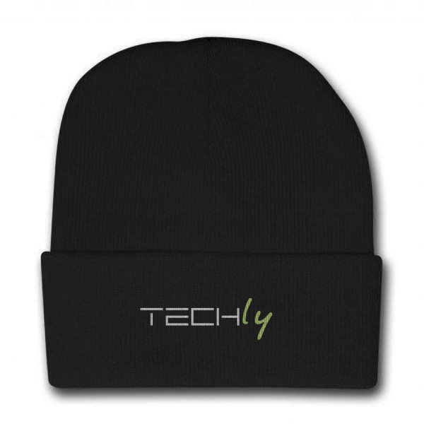 Berretto invernale a costine nero con logo Techly