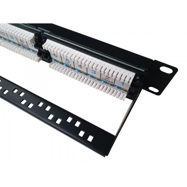 · Pannello patch UTP 24 posti RJ45 cat. 6 con barra di gestione dei cavi removibile