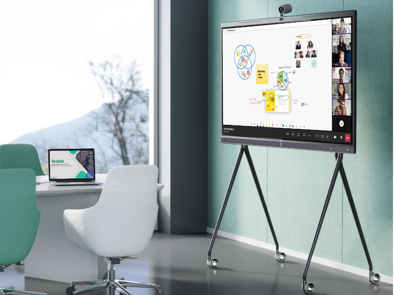 I principali marchi sono YEALINK che produce monitor interattivi certificati Teams con videoconferenza integrata e sistema operativo Android (ampliabile con varie opzioni audio e di controllo, oltre a carrello su ruote e OPS). Consigliato soprattutto a chi cerca una soluzione elegante per sale riunioni fino a 20 persone , con monitor interattivi in 2 misure, 65″ e 86″. Supportano monitor aggiuntivo.