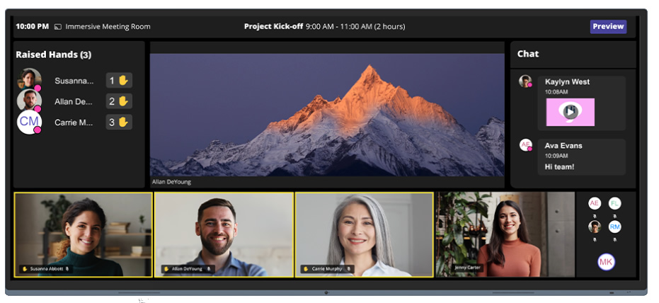 Puoi organizzare la riunione dal laptop sfruttando telecamera (48 MP), microfoni e speaker del monitor Maxhub, con alta qualità in modalità wireless o cablata.