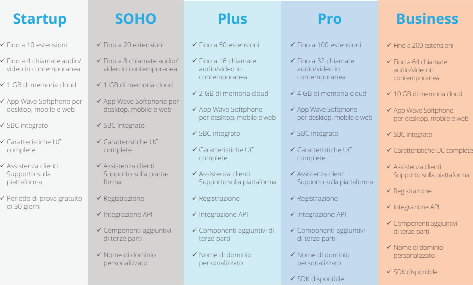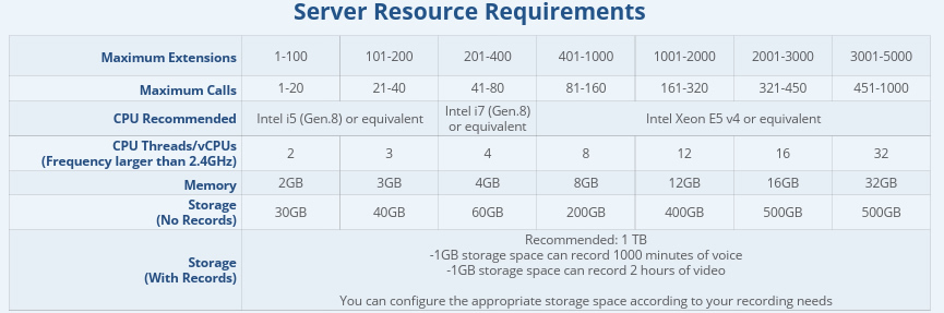 - Supporta fino a 50-5000 utenti e 24-1000 chiamate simultanee.