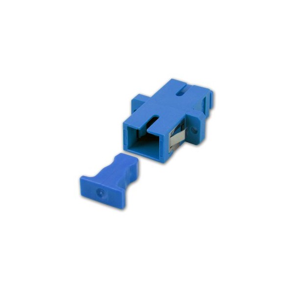 · Adattatore a bussola SC/SC SIMPLEX monomodale · Per montaggio su distributori a pannello o box a muro · Struttura in plastica colore blu, ferrula in ceramica e aggancio a scatto