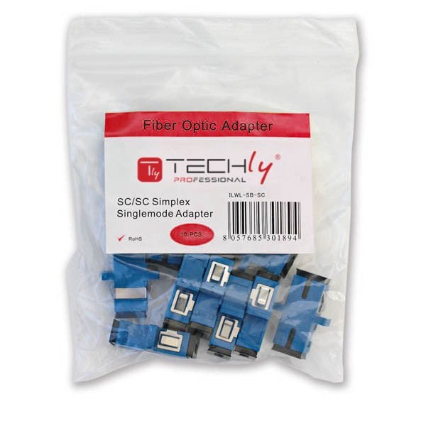 Adattatore a bussola SC/SC SIMPLEX monomodale Per montaggio su distributori a pannello o box a muro Struttura in plastica colore blu, ...
