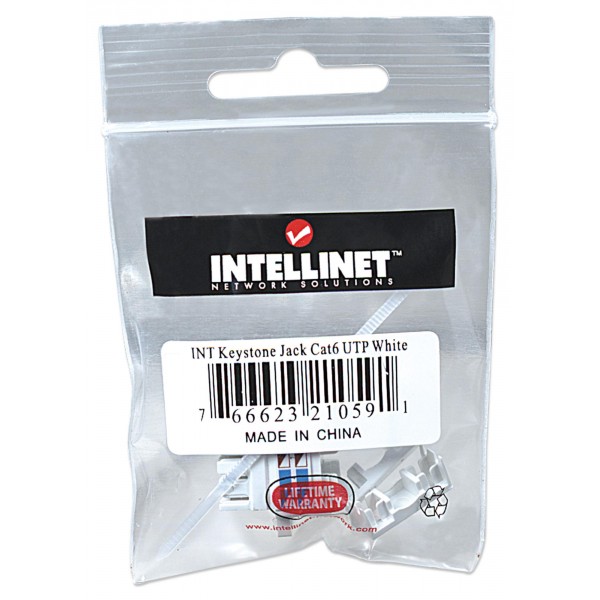 · Frutto Keystone RJ45 Cat.6 · Da usare con cavo CAT6 rigido e flessibile da 22 a 26 AWG · Include fermacavo per prevenire tensioni alle connessioni · Colori codificati 568 A/B · Da usare con inseritori 110 e Krone · Temperatura d esercizio: da -40° a 80° C · Struttura in plastica · Colore bianco