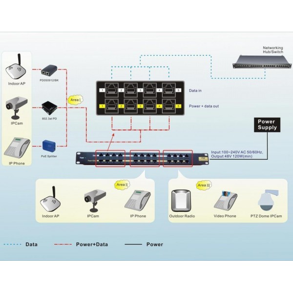Pannello patch 12 porte POE Passivo con Alimentatore