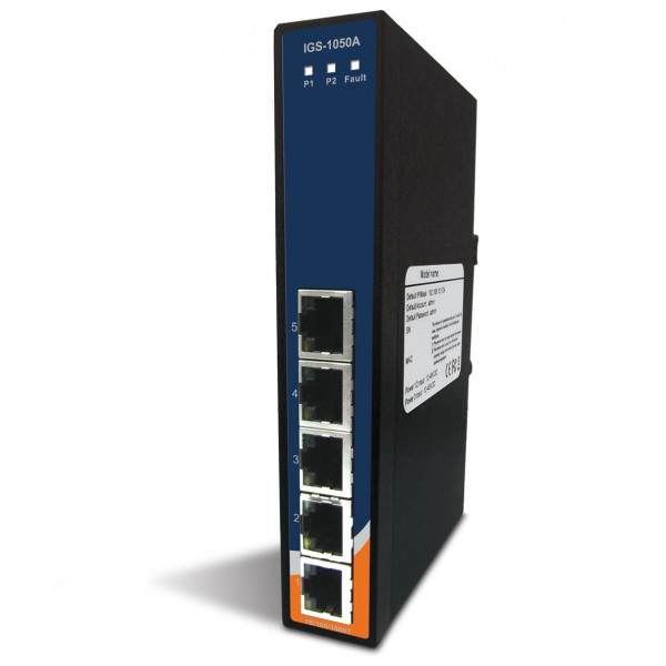 I-SWHUB IND-719 (IGS-1050A) è un Unmanaged Ethernet switch Gigabit con 5 porte 10/100/1000Base-T(X). Supporta ingresso alimentazione ridondante, alloggiamento con protezione IP-30 e con switch DIP per abilitare o disabilitare uscita allarme relay. In aggiunta, l’ampio intervallo di temperatura da -40 a 70°C può soddisfare la maggioranza delle condizioni operative ambientali.