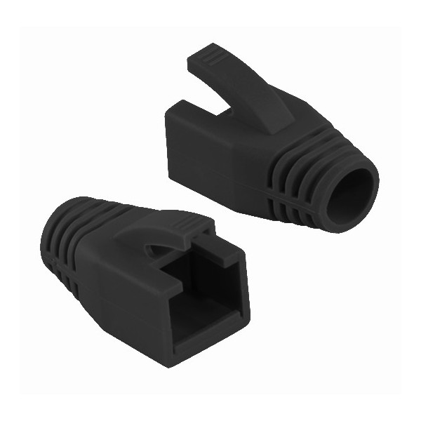 Copriconnettore RJ45 Cat.6 e Cat.6A con diametro max 8mm Utilizzabile per Plug UTP e STP Materiale: plastica Colore: nero ...