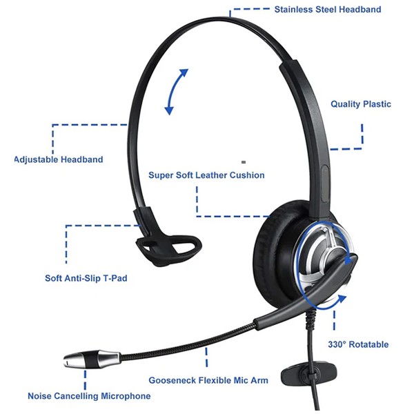 Il padiglione auricolare è ampio e, grazie ai copri auricolari in similpelle o in spugna, garantisce un comfort ottimale anche per uso prolungato, in ambito ufficio e call center. La struttura è solida e il padiglione auricolare è costituito da una capsula monocorpo, coperta dal copri auricolare, quindi non subisce sollecitazioni meccaniche, garantendo elevata affidabilità meccanica nel tempo.