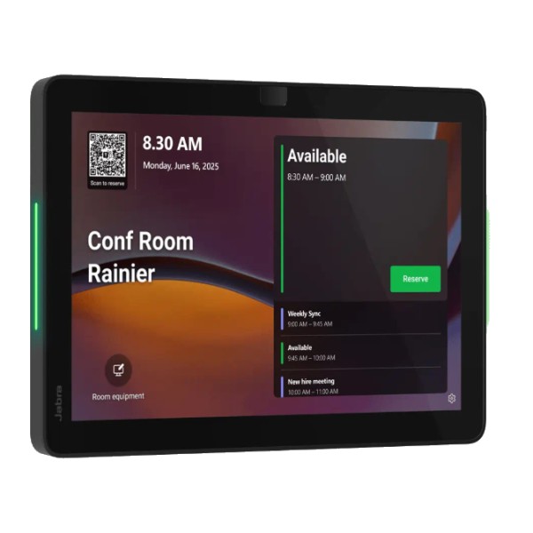 Il display per sala riunioni jabra Scheduler è una soluzione innovativa per la prenotazione e la segnalazione dello stato di una sala riunioni o aula.