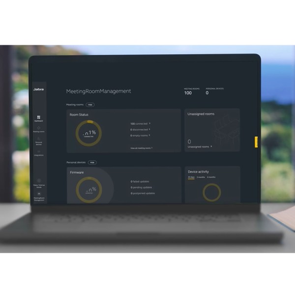 La piattaforma software Jabra permette di gestire i dispositivi, configurarli con una personalizzazione dedicata per ogni sala riunioni o aula corsi.