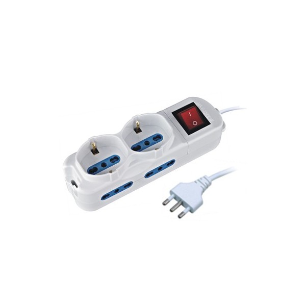 Multipresa 4 Posti Italiana Bipasso / 2 Schuko con Interruttore