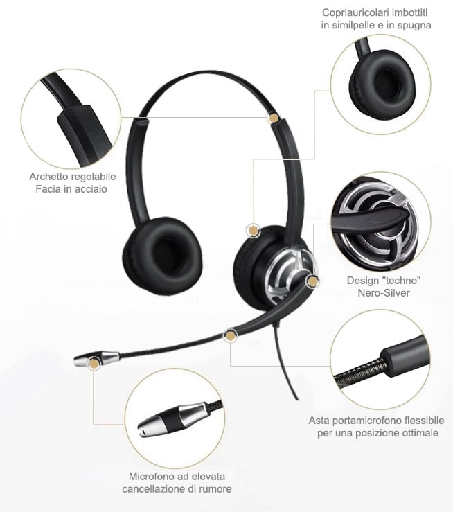 Per i più esigenti, che lavorano in ambienti molto rumorosi e desiderano anche ascoltare musica o vedere film con una qualità hi-fi isolandosi dal mondo esterno suggeriamo cuffie stereo con copriauricolari maggiorati e con Active Noise Cancelling, per tagliare il rumore circostante.