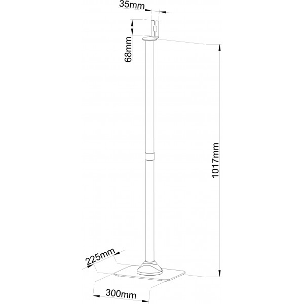 • Supporto da pavimento per Diffusore Sonos Play:1• Sistema unico per reggere il diffusore e dirigere il suono dove si desidera• Facile da installare e da regolareSpecifiche• Solida base: 300 x 225 mm • Altezza del palo: 1017 mm• Permette la gestione interna dei cavi • Colore: nero Contenuto della confezione• Supporto da pavimento per Diffusore Sonos Play:1