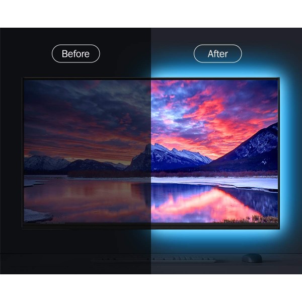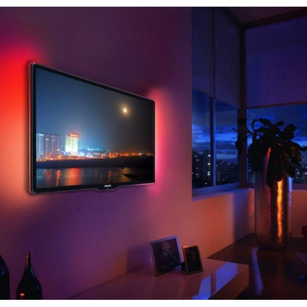 Striscia LED di semplicissima installazione, molto intuitiva: basta collegare la striscia LED alla porta USB del televisore e, togliendo la carta posta sopra all'adesivo della striscia, posizionarla sul retro del monitor. E' possibile utilizzare i connettori per unire le diverse parti della striscia in caso di curve. Inoltre, nel caso si desideri una striscia più corta, è possibile tagliarla semplicemente con delle forbici.Caratteristiche• Striscia 30 LED ideale per retroilluminare un monitor• Migliora la visione della TV alleviando l'affaticamento degli occhi• Dotata di adesivo che ne rende facile il posizionamento• Include telecomando per la selezione del colore, modalità di illuminazione e regolazione dell'intensità• Provvista di attacco USB• 30 LED SMD5050• Classe energetica A++