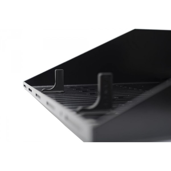 · Predisposto per il fissaggio dei fermi e di fascette in velcro per bloccare saldamente gli elementi audio video