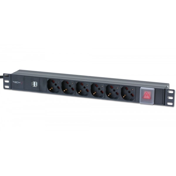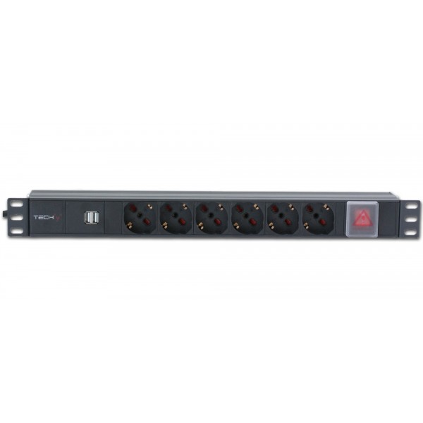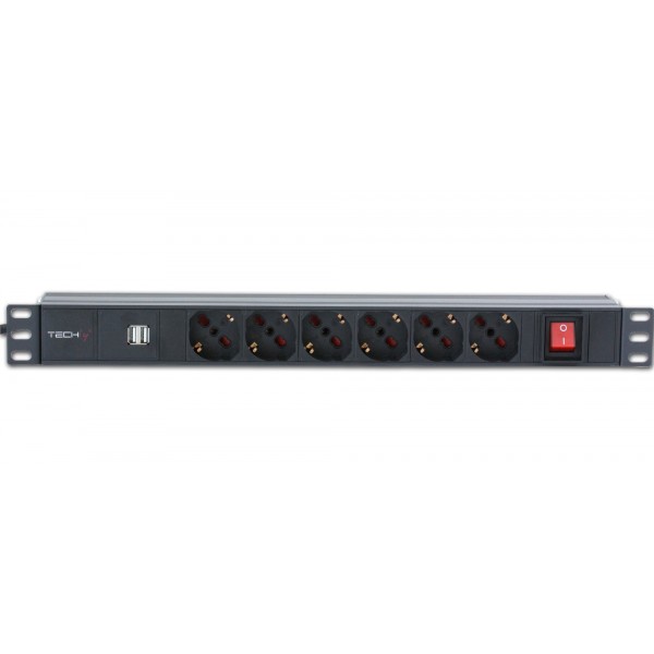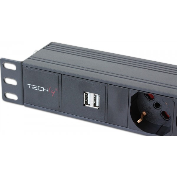 Multipresa 6 posti da rack 19'' con interruttore e 2 prese USB 1 HE
