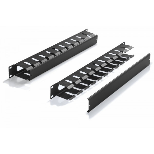 · Pannello passacavi 19 con coperchio · Installabile su armadio rack 19 · Mantiene i cavi in ordine e organizzati · 10 fori per lato (totale 20) · Materiale: acciaio · 1U di altezza · Profondità 7 cm · Peso: 0,5 kg · Colore Nero