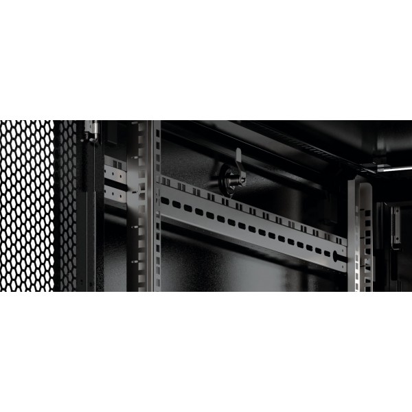 Solido armadio rack a pavimento caratterizzato da una struttura robusta e da una manifattura rispondente a elevati standard qualitativi. La robustezza della struttura si unisce ad un design unico e innovativo, studiato nel minimo dettaglio per garantire la massima versatilità, nonché facilità e praticità nell’installazione. Cerniere a sgancio rapido, serrature a chiave sui pannelli, porta reversibile, pannelli laterali e posteriori amovibili, doppia coppia di montanti numerati, predisposizione per il passaggio dei cavi, fondo dotato di piastra scorrevole, tetto con particolare struttura a pagoda per favorire la circolazione dell’aria: queste sono tra le caratteristiche principali della serie Evolution. Un sistema di staffe acquistabili separatamente rende poi utilizzabile l’armadio in ogni suo spazio, consentendo di installare anche apparecchiature anche lateralmente, sfruttando quindi completamente lo spazio interno che rimarrebbe inutilizzato in caso di dispositivi poco profondi. Inoltre, la profondità maggiorata permette l alloggiamento e la protezione di tutte le principali tipologie di server in commercio. Grazie infine all ampia gamma di accessori proposti, questi armadi sono in grado di soddisfare tutte le esigenze di installazione.