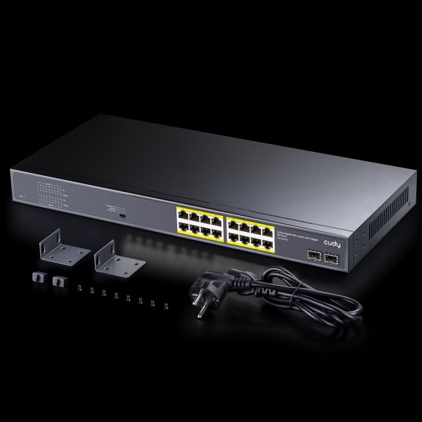 Switch 16 porte Gigabit PoE+ e 2 slot SFP Gigabit