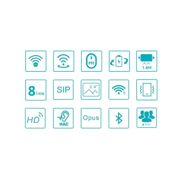 È dotato di uno schermo a colori da 2,4 pollici, pulsanti fisici, conferenza a 6 vie, video H.264 e interfono PTT.