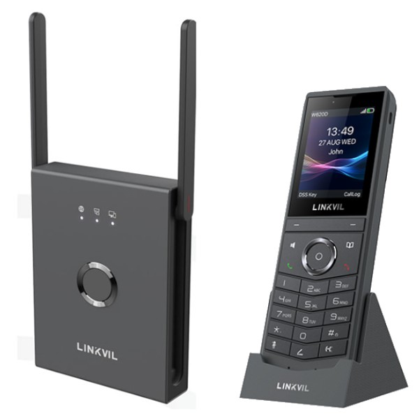 Fanvil linkvil W620P , è cordless DECT, utilizzabile su linee e interni di centralini VoIP on premise, software e cloud.